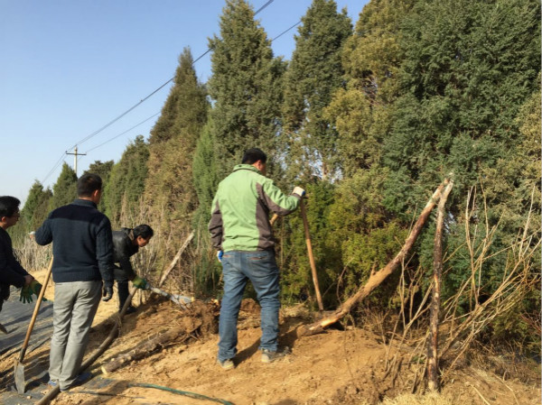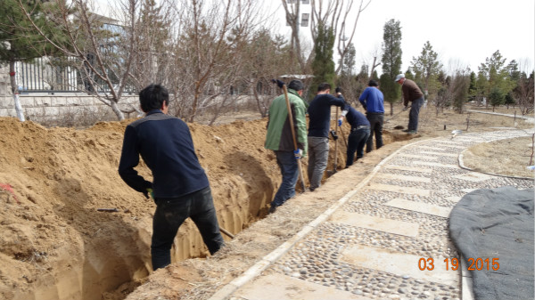 三月,空氣中依然透著寒意,這并沒(méi)有阻擋大家植樹(shù)的熱情。在李忠飛總經(jīng)理的現(xiàn)場(chǎng)指導(dǎo)下,會(huì)議中心全體員工以及路橋公司員工人頭攢動(dòng),不怕風(fēng)吹日曬、不怕饑餓口渴,不辭辛勞、鐵鍬揮舞,挖樹(shù)坑、拉樹(shù)苗、放樹(shù)苗、填土、踩實(shí)、澆水,一派熱火朝天的勞動(dòng)景象。經(jīng)過(guò)大家五天的共同努力,130余棵園柏栽種成功,圓滿(mǎn)完成了預(yù)期任務(wù)。大家看著親手栽種的園柏,滿(mǎn)是欣喜,這些青翠勁挺的園柏給會(huì)議中心增添了一抹靚色。