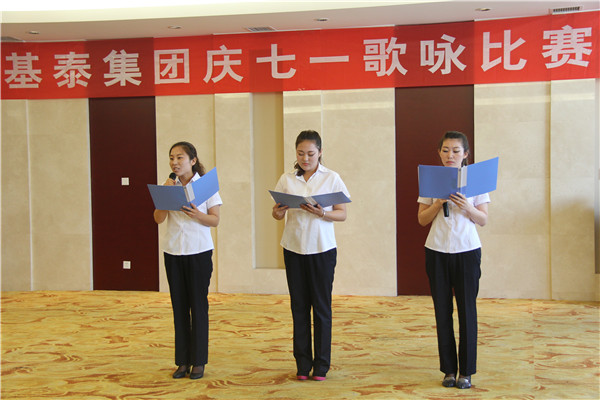 本次歌詠比賽分為語言類和歌舞類。李亞光總經(jīng)理為“七一”慶典活動致辭,之后,隨著一曲高昂的《東方紅》唱響,歌詠比賽拉開帷幕。首先,所有人員集體進行了莊嚴的入黨宣誓,一句句莊嚴的誓詞,深入人心。其次,來自基泰建設(shè)公司辦公室、財務(wù)部、經(jīng)營部、會議中心、東沙新區(qū)、白鷺煤礦的11個節(jié)目陸續(xù)登臺亮相。振奮人心的歌曲《習(xí)主席寄語》、《中華好兒孫》、《我的中國心》、《草原上升起不落的太陽》等心中頌歌;深情的詩朗誦《七月的航船》、《黨的頌歌》、《黨啊,我的母親》;激情的舞蹈《北京的金山上》、《七月火把節(jié)》……,經(jīng)過評委們認真評判,白鷺煤礦的詩朗誦《黨啊,我的母親》獲得語言類一等獎,基泰建設(shè)公司財務(wù)部舞蹈《北京的金山上》獲得歌舞類一等獎。