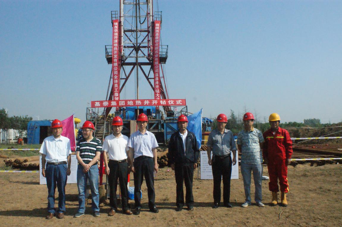 “我宣布,基泰農(nóng)業(yè)公司地?zé)峋椖块_工!”隨著咸陽市國土局副主任來軍一聲令下,施工現(xiàn)場禮花彩舞,幾十名工人走上鉆井井架,各種機器開始運作起來,基泰農(nóng)業(yè)公司首口地?zé)峋椖空介_工建設(shè)。