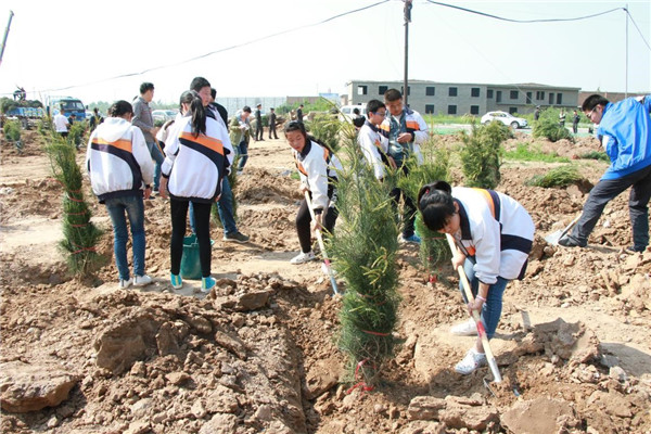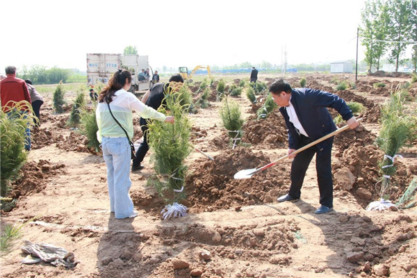 上午9:30分,植樹活動正式開始。高莊鎮(zhèn)政府相關干部、基泰集團全體人員與師生們一起揮動鐵鍬培土,提水澆灌樹木,一片忙碌景象。經過一上午的辛勤勞動,近三百棵雪松整整齊齊的屹立在壽平村的土地上。盡管當天氣溫有點高,但是高不過每一個參與者的熱情,當大家看著自己親手種下的樹苗亭亭玉立于眼前時,所有的汗水和勞累都被拋之腦后,換來的無盡的欣慰和歡聲笑語。