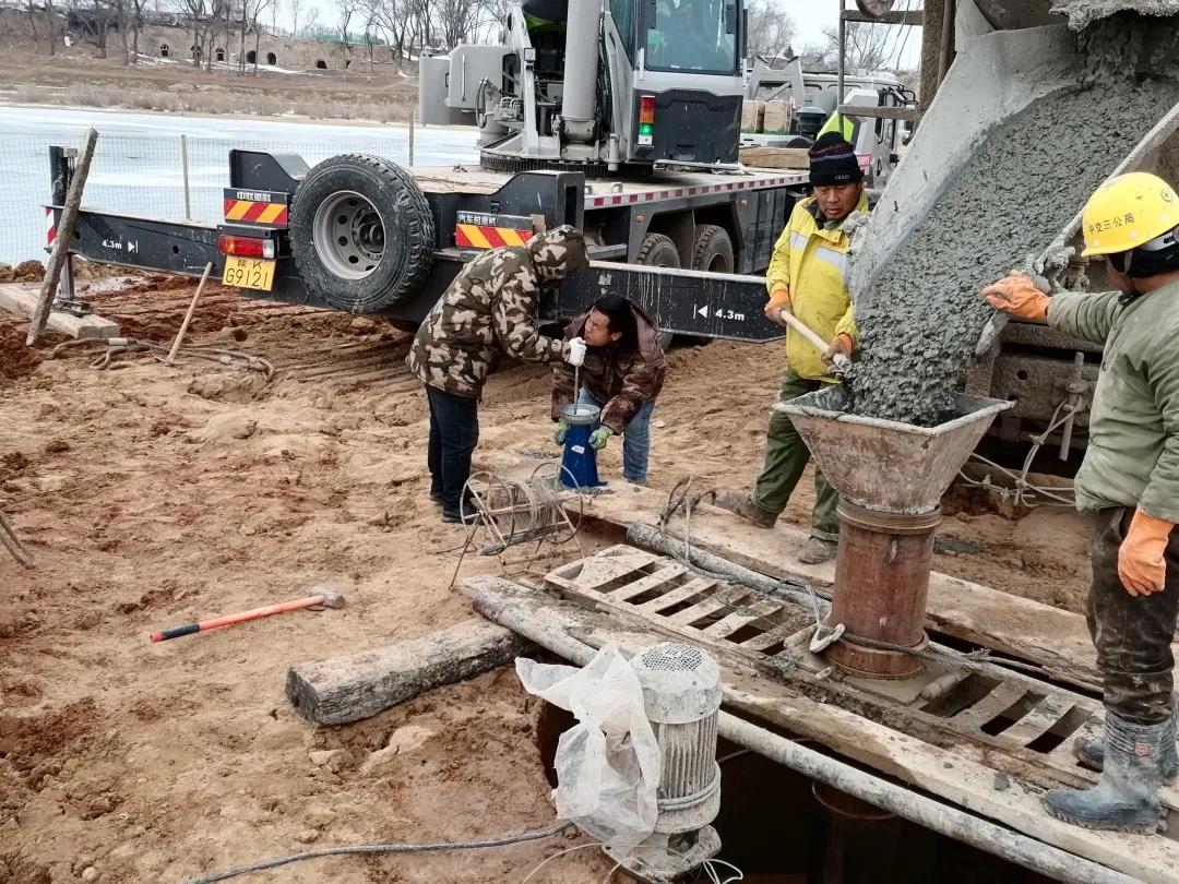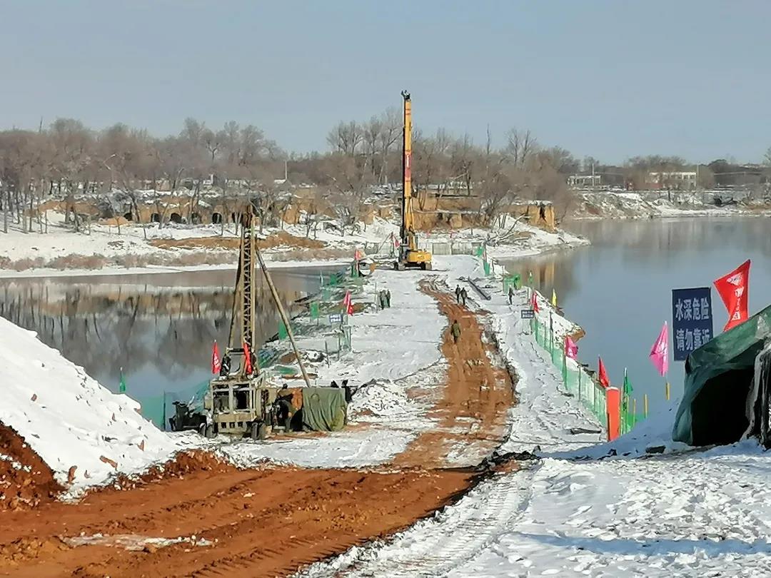 楊家灣水庫大橋樁基,最大水深6米,地質(zhì)條件非常復(fù)雜,施工處于冬季施工、最低氣溫低至﹣20℃,施工人員不懼嚴(yán)寒、創(chuàng)新施工工藝,合理緊湊安排施工工序,僅用35天時間全部完成了該橋樁基施工,為明年施工贏得了更多時間。