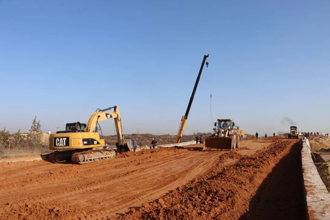 在項(xiàng)目建設(shè)現(xiàn)場(chǎng),施工人員忙個(gè)不停,吊裝機(jī)、挖掘機(jī)、裝載車、壓路機(jī)等設(shè)備來(lái)往穿梭在工地上,機(jī)械轟鳴,工地呈現(xiàn)出一派熱火朝天的施工景象。