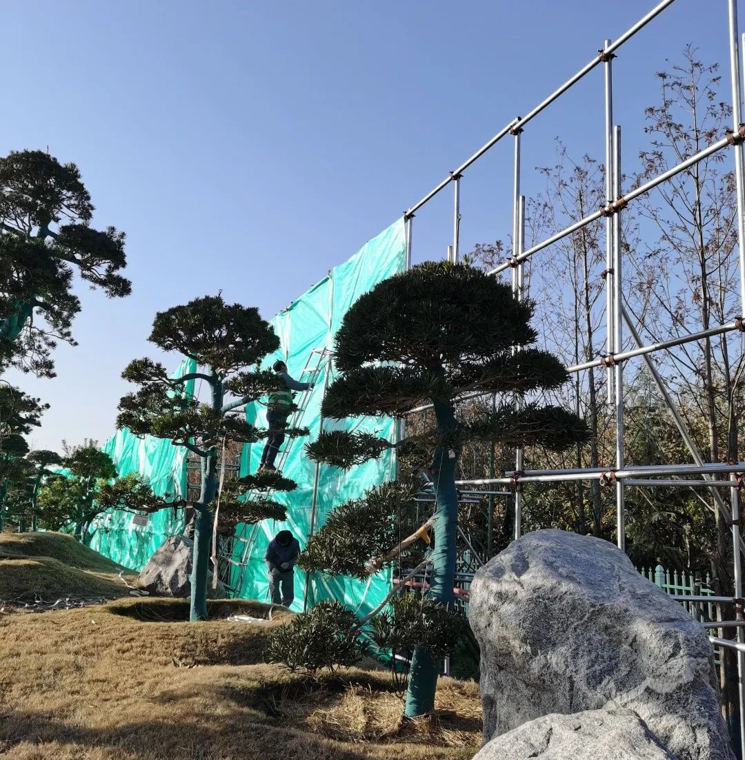 漂洋過海而來的羅漢松在基泰·上松苑迎來了第三個冬天,園林養(yǎng)護(hù)人員正在精心纏繞保溫保濕帶,為樹木安全越冬穿上“棉衣”。