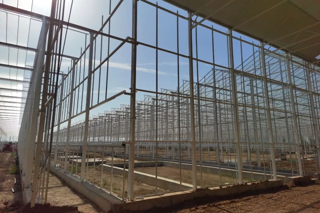 截止目前,玫瑰鮮切花溫室30720㎡和紅掌鮮切花溫室19668㎡主體結構、頂部及立面玻璃覆蓋、三層網(wǎng)托壓幕線、暖通工程及給排水工程地下管網(wǎng)、CO2補充系統(tǒng)等已完成安裝,溫室頂開窗傳動系統(tǒng)完成80%、內(nèi)遮陽內(nèi)保溫鋼纜驅動系統(tǒng)完成70%。玫瑰溫室半封閉結構,紅掌溫室濕簾及負壓風機等已完成安裝。